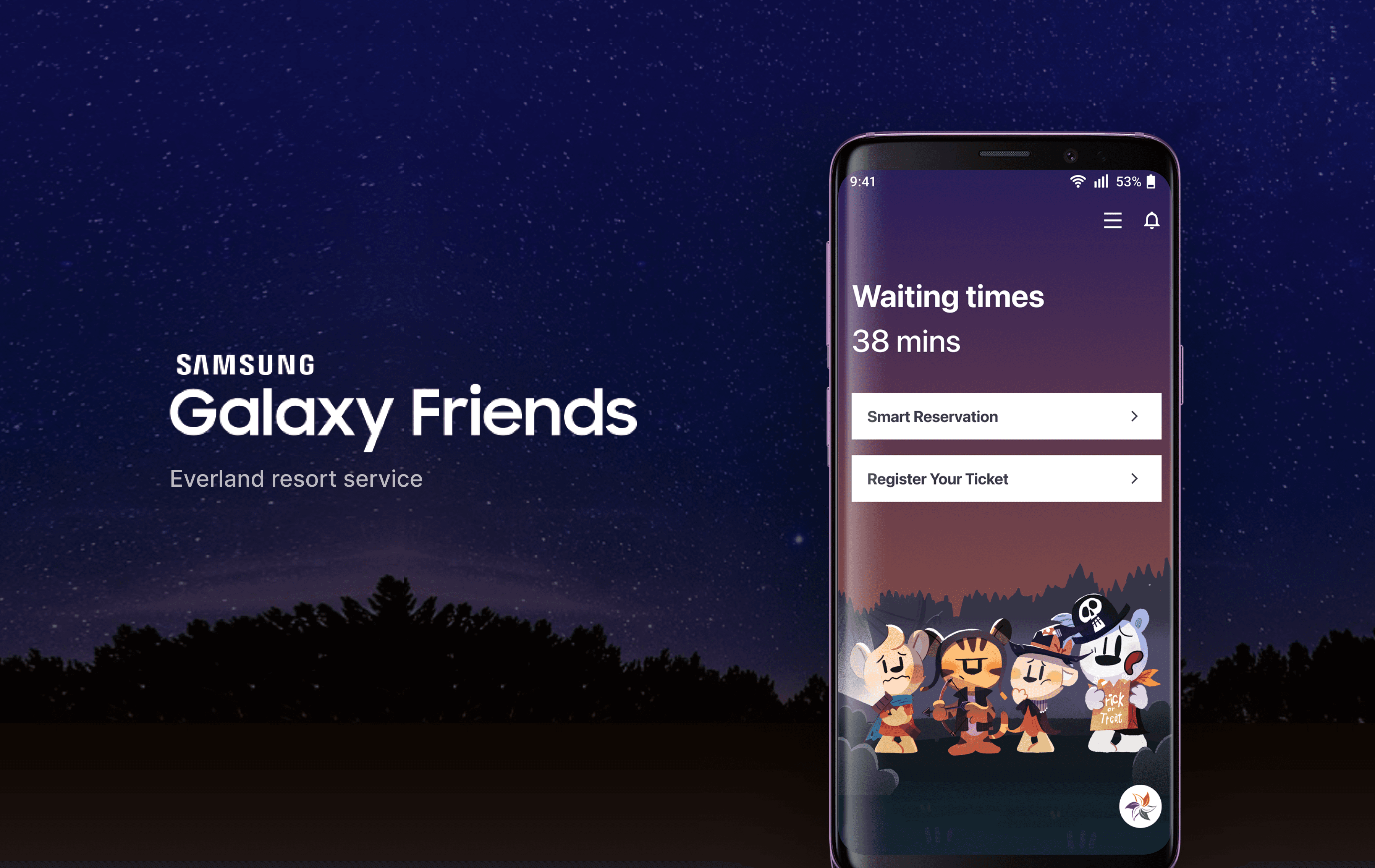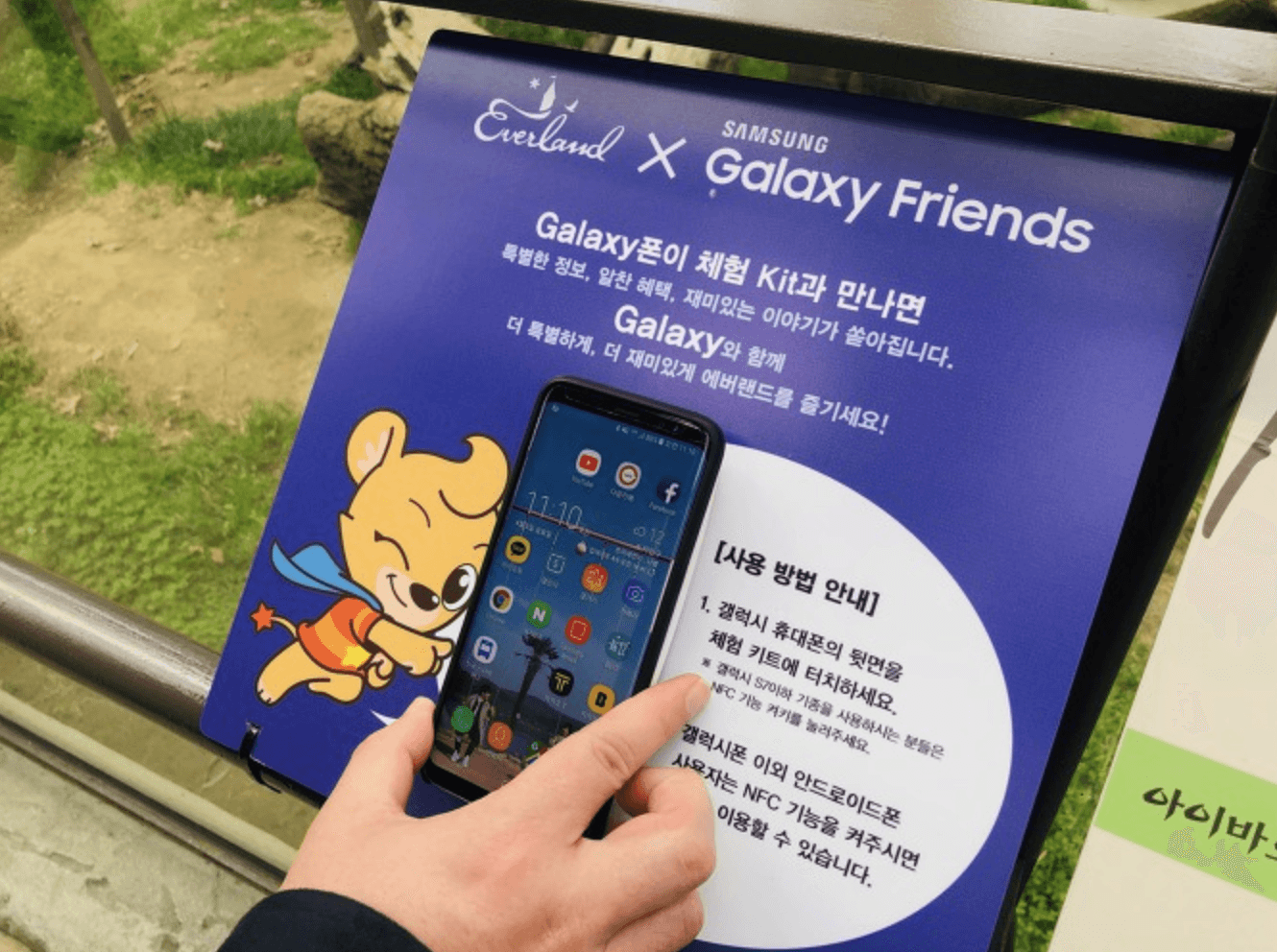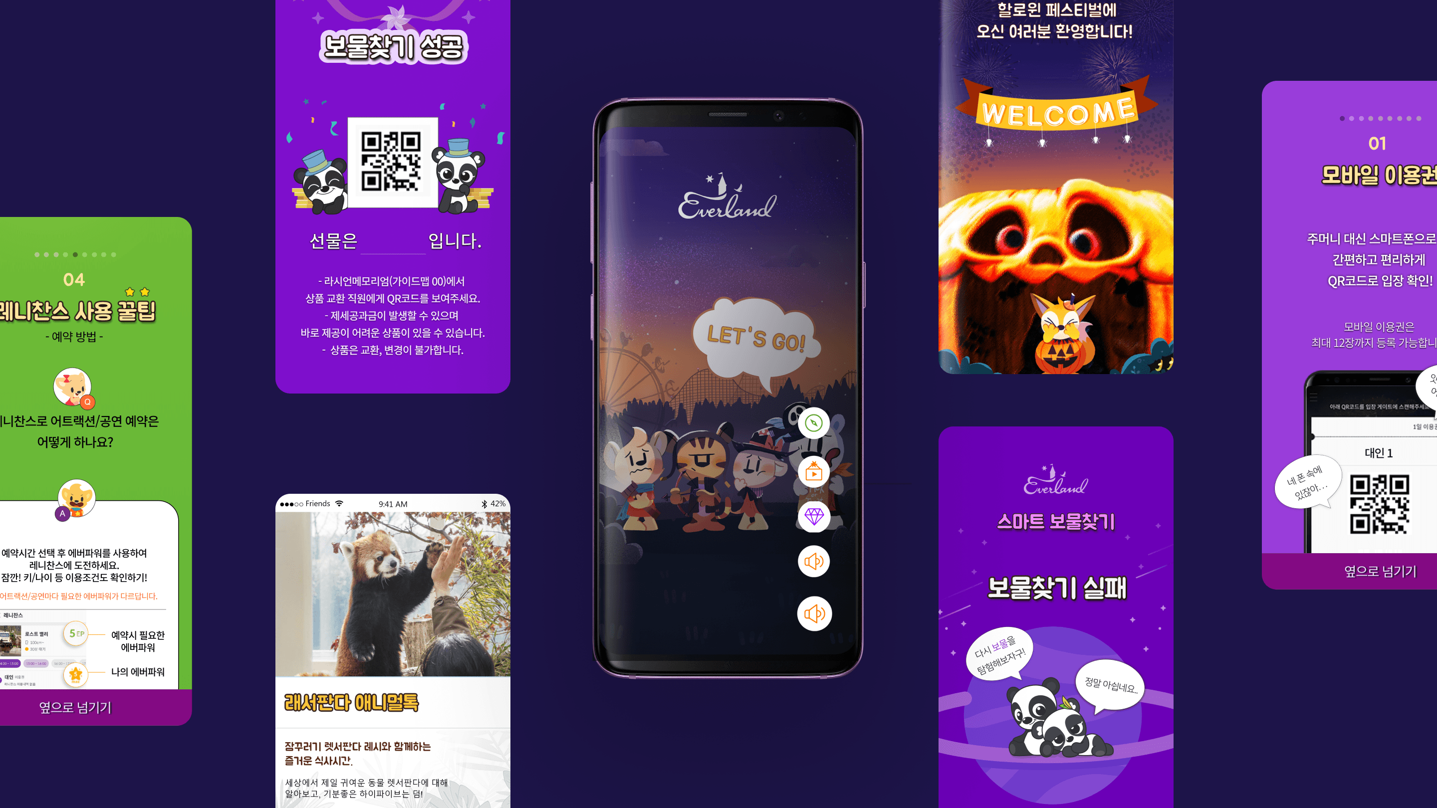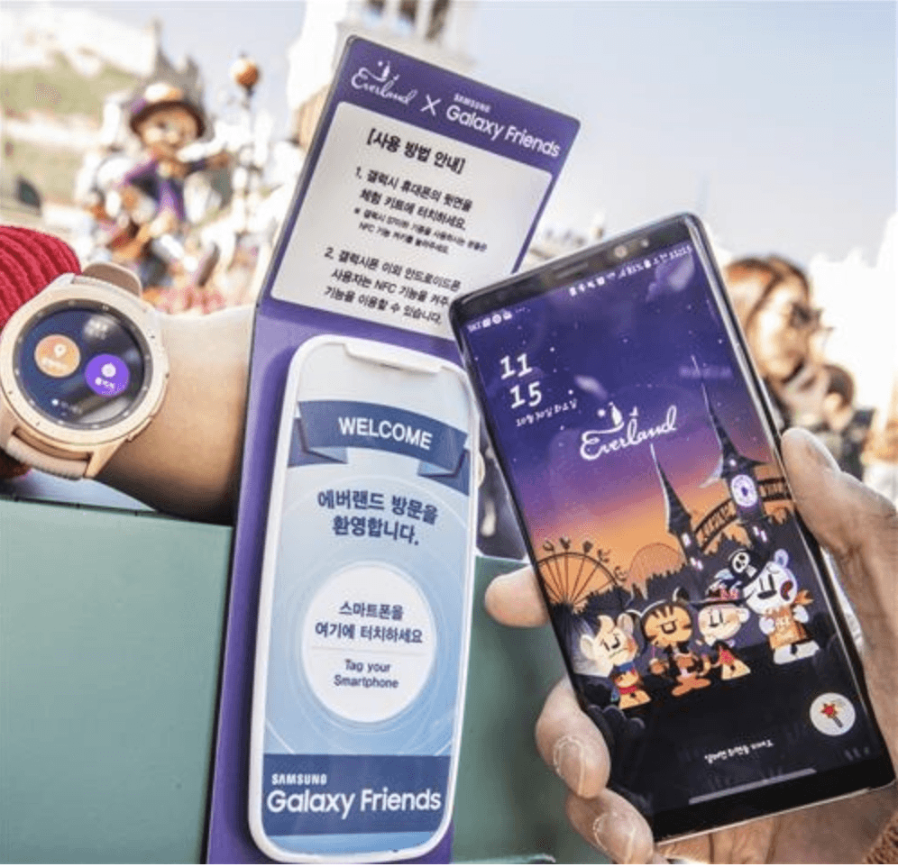While working at Samsung C&T Resort's graphic design department, I partnered with Samsung Electronics' Galaxy Friends team on a project for Everland, Korea's largest theme park. We developed an NFC-enabled experience kit, allowing visitors to access over 100 interactive pieces of content and festival information directly on their mobile devices and Galaxy Watches. This innovative service not only provided graphic-rich park and event details but also enabled guests to book attractions and view wait times, significantly enhancing the visitor experience at Everland.