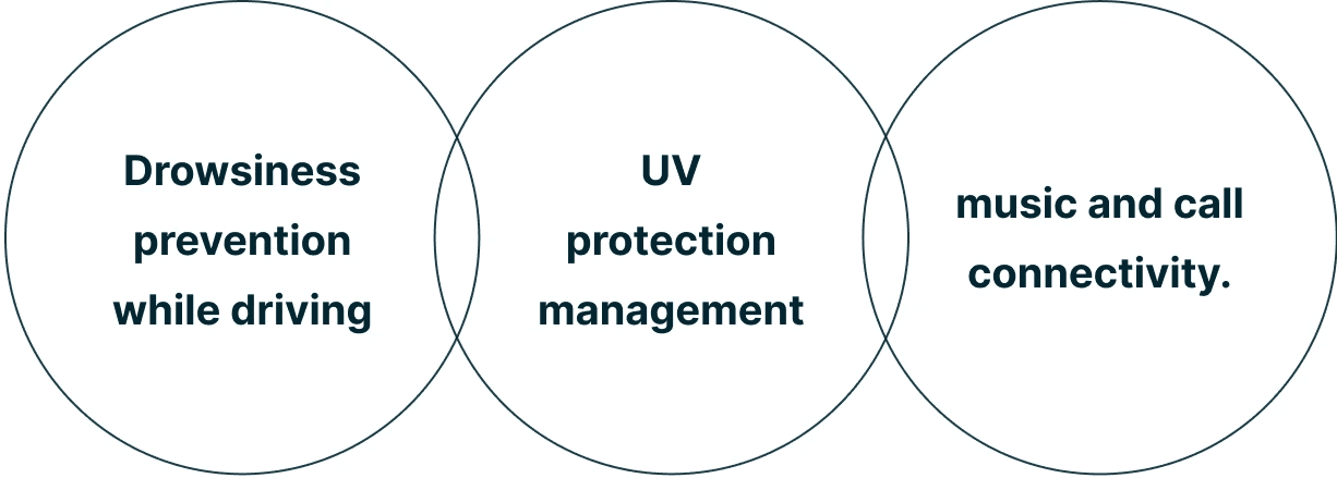 Our team planned and conducted tests for IoT functionality and modeling, user responses, in-drive feature performance, and service scenarios. Users can prevent drowsiness while driving, effectively block UV rays, and receive assistance during driving or travel.