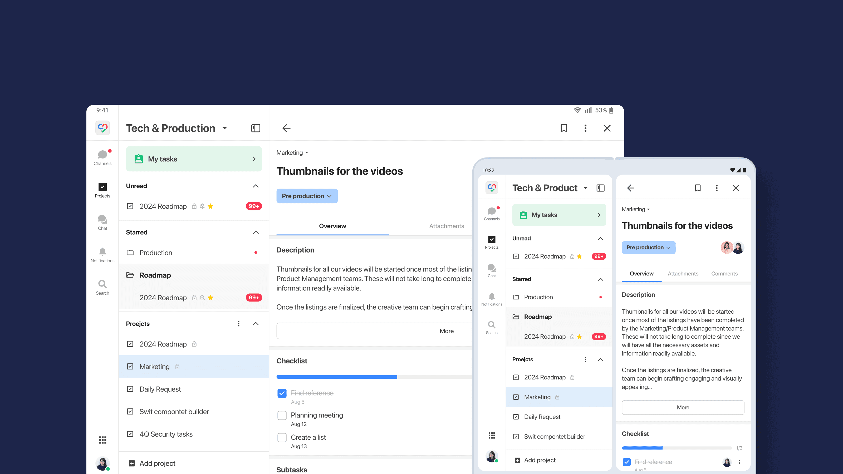 To enhance the user experience for extended work experiences across multiple organizations, we have improved the system to allow for work sharing and project follow-ups between workspaces. By linking projects to channels, any changes or updates in ongoing tasks are immediately visible in the respective channels. This enhancement ensures transparency in team collaboration and enables asynchronous communication.