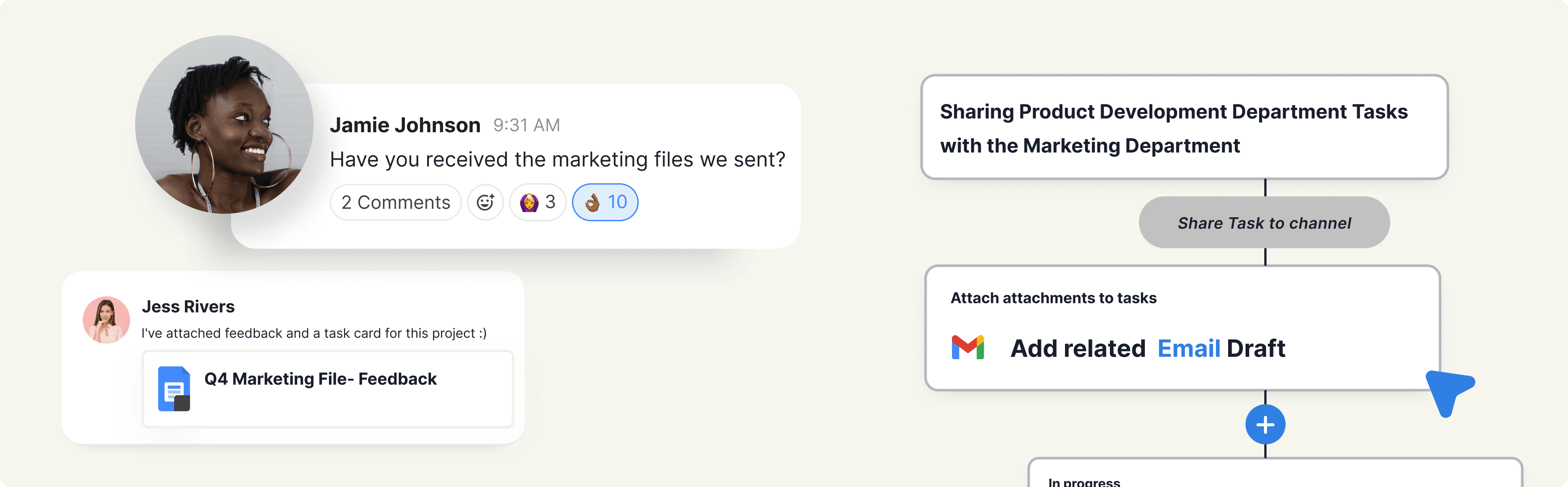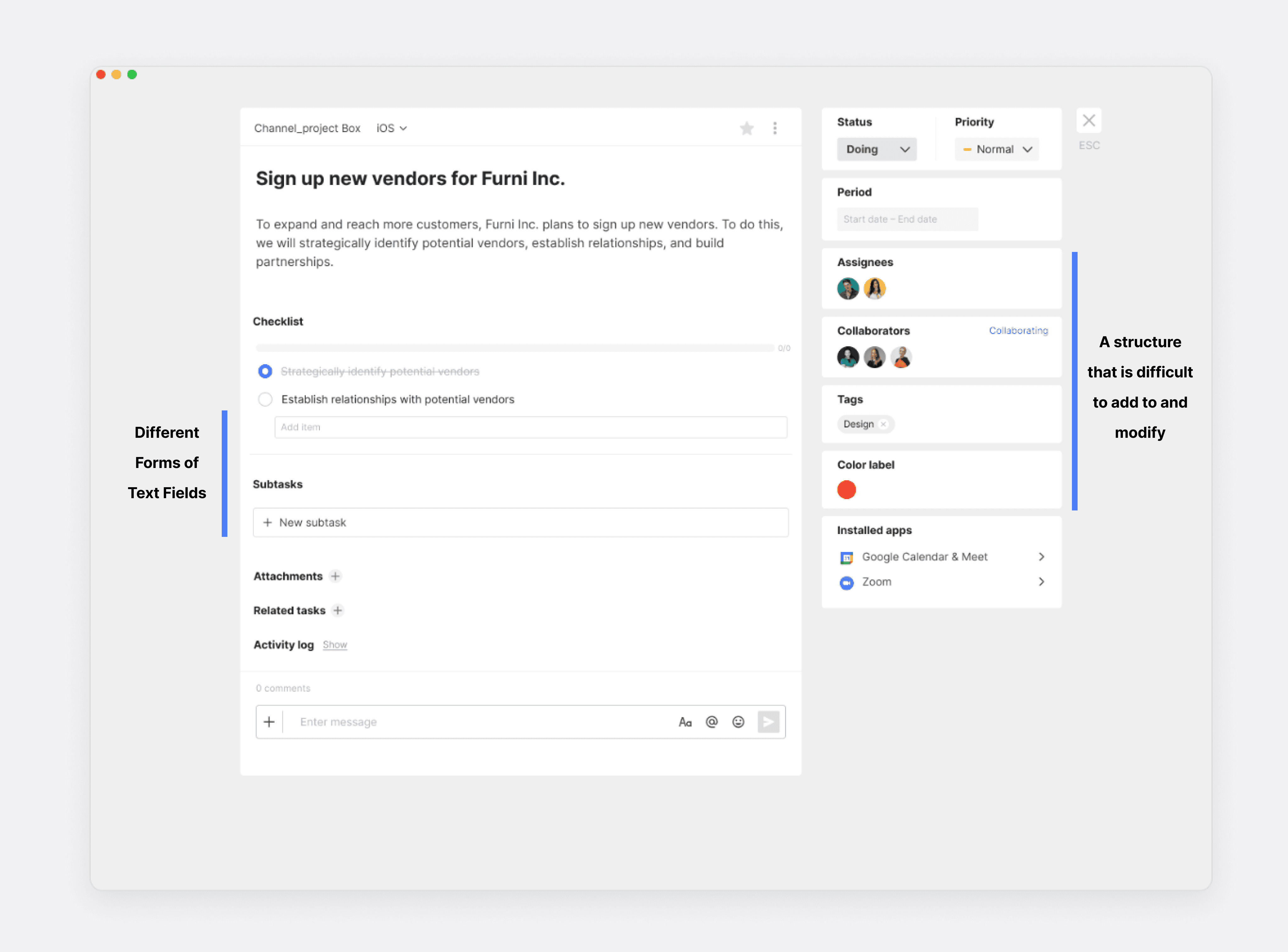 Project managers found it inconvenient to switch back and forth between chat channels and tasks while trying to manage projects efficiently.